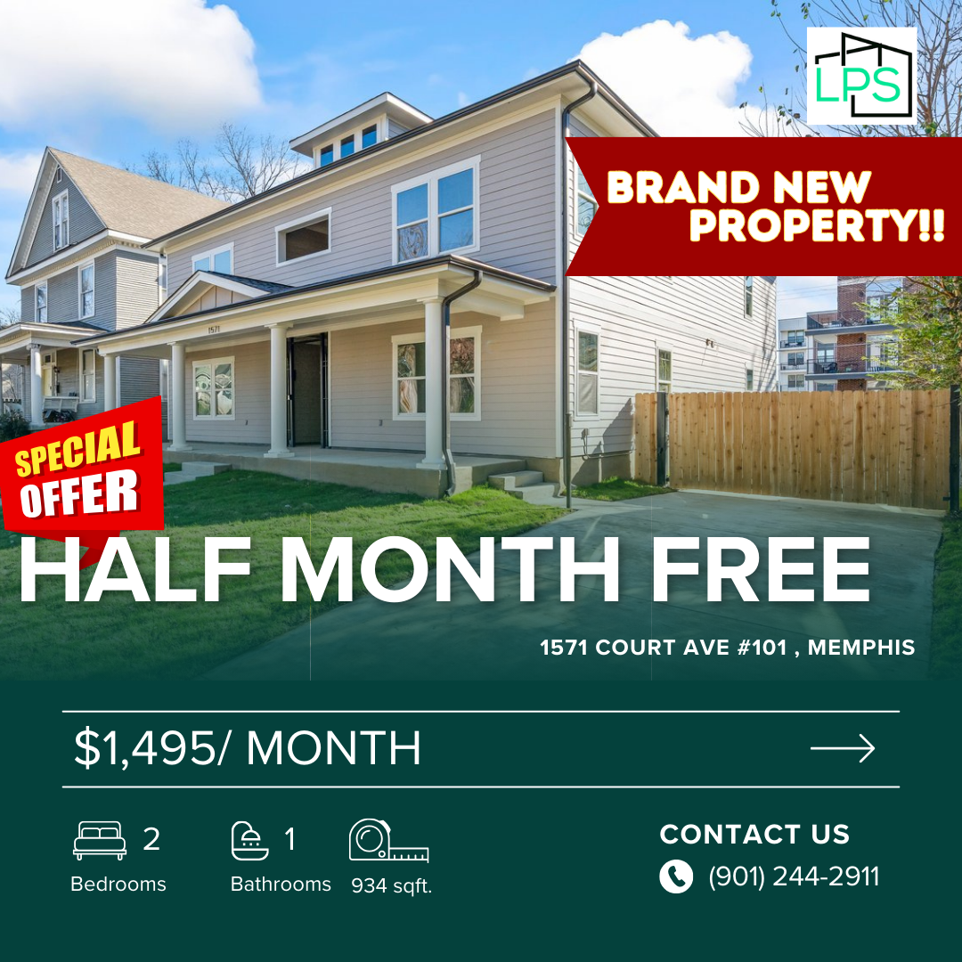 This BRAND NEW construction 2-bedroom, 1-bathroom apartment offers 934 sq ft of comfortable living space in the heart of Midtown Memphis. Clean design, modern finishes, and water/sewer included in rent. Gated parking!