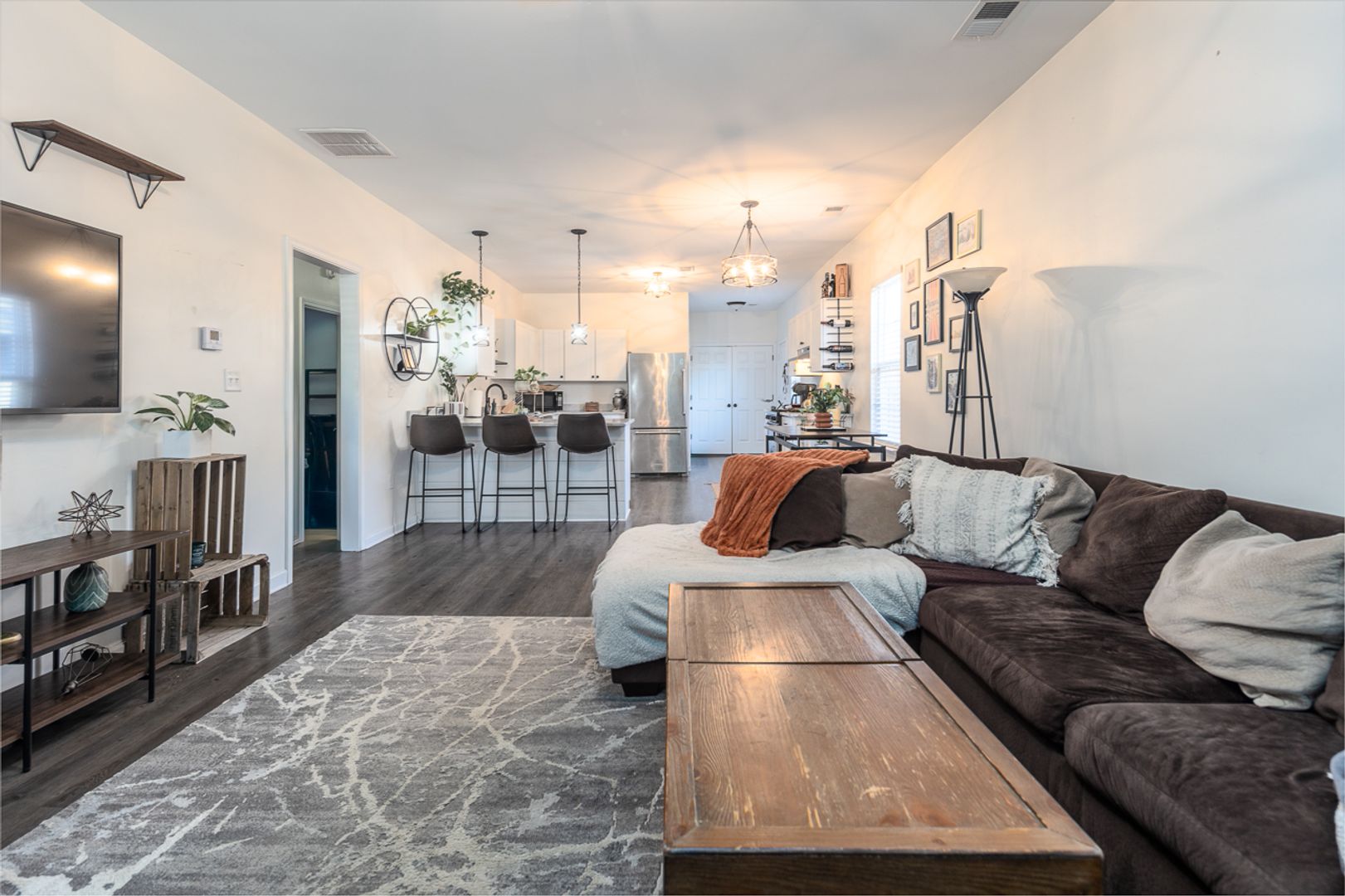 • Refinished hardwood-style floors and fresh paint throughout